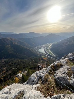 Sledila je turneja "od štanta do štanta". Dobra volja, sproščena družba in sonce. Razočarali niso niti razgledi. Česa bi si tečajnik še lahko želel? Smeri, ki so se sprva zdele izjemno dolge, so na koncu minile še prehitro. Nasmejani smo na vrhu zvijali vrvi in uživali na soncu. Sledil je še kratek vzpon na vrh Röthelsteina in spust nazaj do parkirišča.