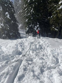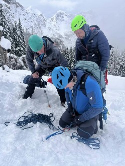Nekateri že v petek, drugi pa v soboto zjutraj smo se odpravili do koče na Klemenči jami z namenom, da se naučimo in v praksi uporabimo zimsko tehniko. Po kratkem jutranjem zboru smo opravili test žoln in se razdelili v štiri skupine. Po vrsti smo obdelali snežna sidrišča in varovanje v snegu kot prvi in drugi. Naredili smo snežni prerez in preizkusili norveško in tlačno metodo. Kljub temu, da je bil sneg precej zbit, so se določene plasti zelo lepo sesedle. Preizkusili smo iskanje in sondiranje ponesrečenega. Nadaljevali smo z uporabo derez in ustavljanje s cepinom. Žal je bil sneg rahlo premoker za pravi občutek padca, je pa bil super za učenje. Zaključili smo s snežnim abzajlom, kjer smo preizkusili abzajl na dva cepina in na snežni krožnik. Abzajl na snežni krožnik je presenetljivo dobro držal povsem v nasprotju z intuicijo. Pred zaključkom dneva smo se še enkrat ozrli po okoliških hribih od Krofičke pa vse tja od rink in Mrzle gore. Zimski razgled je bil res izjemen, žal pa je občasno bobnenje plazov v okoliških hribih in napovedana odjuga odnesla upe, da bomo znanje iz tečaja prenesli tudi v prakso na pristopu dan kasneje. Soboto smo zaključili z odličnim ričetom, kartami in Tomotov glasbeno spremljavo. V nedeljo zjutraj smo se še enkrat ozrli po osončenih vršacih in po zajtrku odkapljali nazaj v dolino. |
