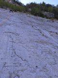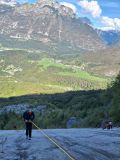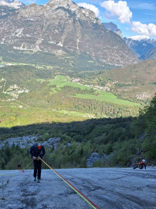 Prvi abseil, v ozadju Rombon (levo; 2208m) in Jerebica (desno; 2126m). (Foto: Petra Zorko)