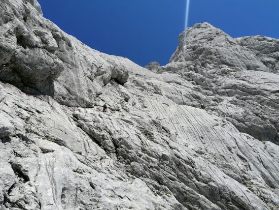 KomentarŠe zadnja smer pred polletnim premorom - naslednji dan sem namreč v južnem razu Skute zgrmel 10m v globino in si pri tem zvil oba gležnja.