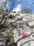 KomentarOdličen način za dvig krvnega pritiska - po mesecih neizprosnega trpinčenja snega in ledu ni boljšega načina za psihološki preizkus kot zamenjava derez za plezalke in zanesljivega (zadovoljivega?) izklesavanja stopinj za vero v najmanjše možne luske in ostale plataste "oprimke". Prav tako slike predstavljajo zavajujočo situacijo - občasno sonce je bilo redno popestreno s sunki vetra, ki so vzdušje obdržali občutno zimsko.