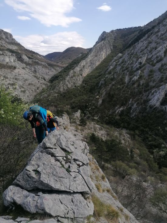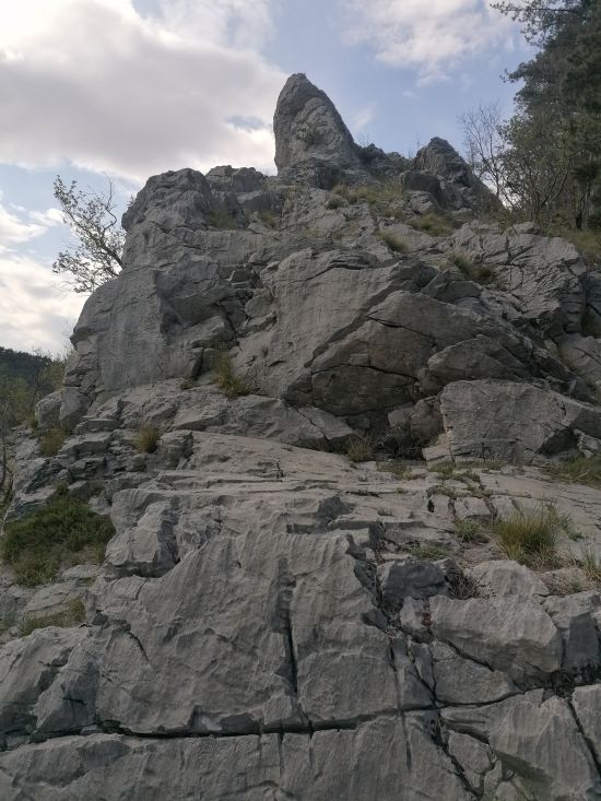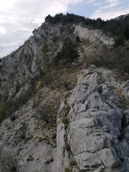 KomentarZa konec dneva pa smo odkrili še izstopno varianto iz doline Glinščice - desni greben v Muhovi steni. Zadeva služi isti ideji kot Comicijev greben (izogib planinski poti) in poleg tega pripelje še direktno do parkirišča.
